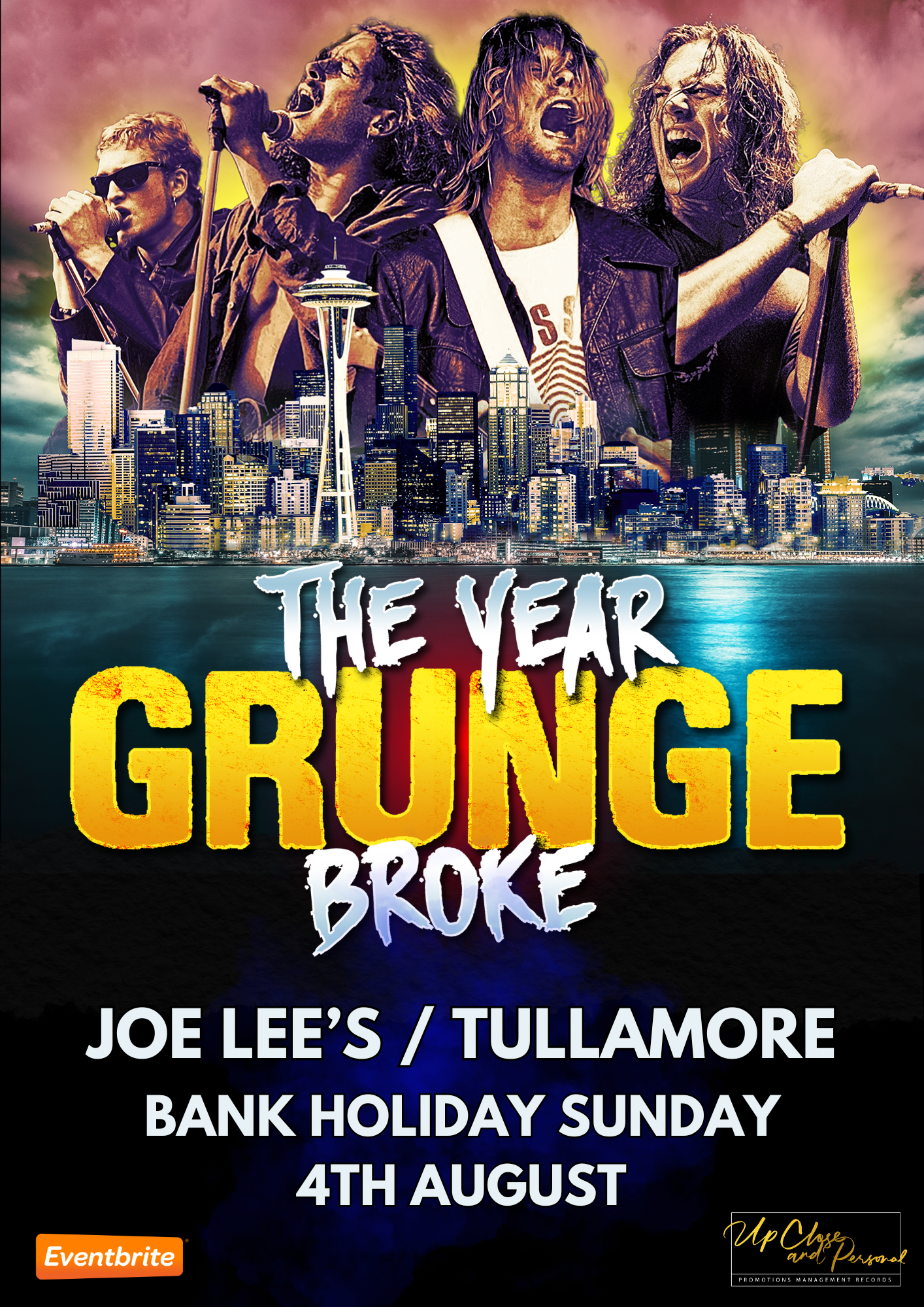 Get ready to immerse yourself in the raw energy and defiant spirit of Grunge and ’90s Alternative Rock with 𝗧𝗛𝗘 𝗬𝗘𝗔𝗥 𝗚𝗥𝗨𝗡𝗚𝗘 𝗕𝗥𝗢𝗞𝗘, a true homage to the Grunge and Alternative Rock scene of the ’90s.